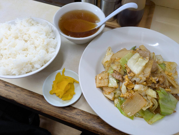 八海で 週替り定食 今日は卵系 辛味はなく 美味しい 肉も少し多い おそらく自家製と思われる豆板醤で 少し辛くなり いつも美味しい八海