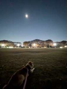 獅子丸と東へ移動 かなり近くで鳴いてるフクロウ しばらくすると こちらが見えてるのか移動され東の方から聴こえてました 半月が出て不思議な夜 KGK